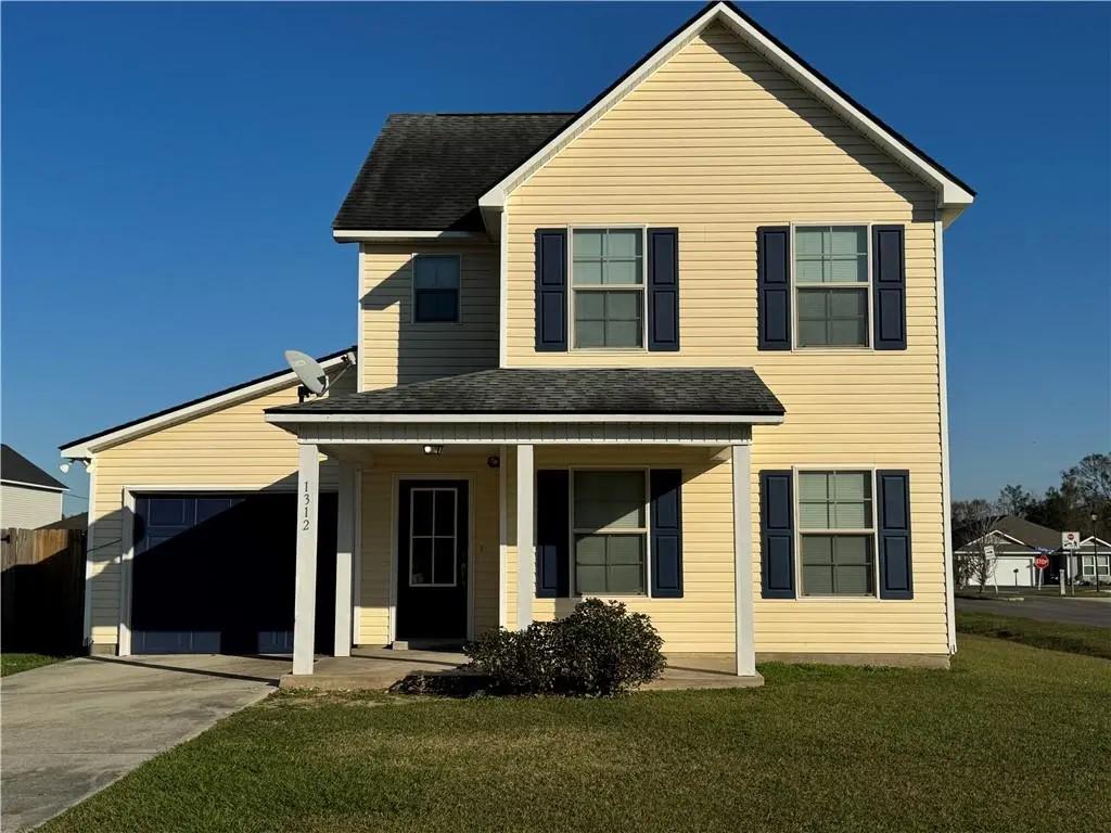 Tucked in a quiet corner of Carrington Court next to a dead end, this meticulously maintained home sits on an expansive corner lot. A six foot wooden fence provides privacy for the spacious backyard which also features a shed. Freshly painted and with new vinyl wood plank floors, this house has an open design with an easy flow from foyer to living room to dining room and kitchen. Laundry room with washer and dryer hookups is hidden behind double doors adjacent to the dining room, and the air conditioned garage has been finished into a man cave that any football fan will love. A winding stairwell leads you up to three bedrooms and two full bathrooms. The primary suite features a large walk-in closet and a bathroom with a deep soaking tub. All this home needs is for you to call it home, turn the key, and move into your new life in one of the fastest growing cities in the states. The house is priced to sell, so it won't take long to go. Schedule your private showing today!
