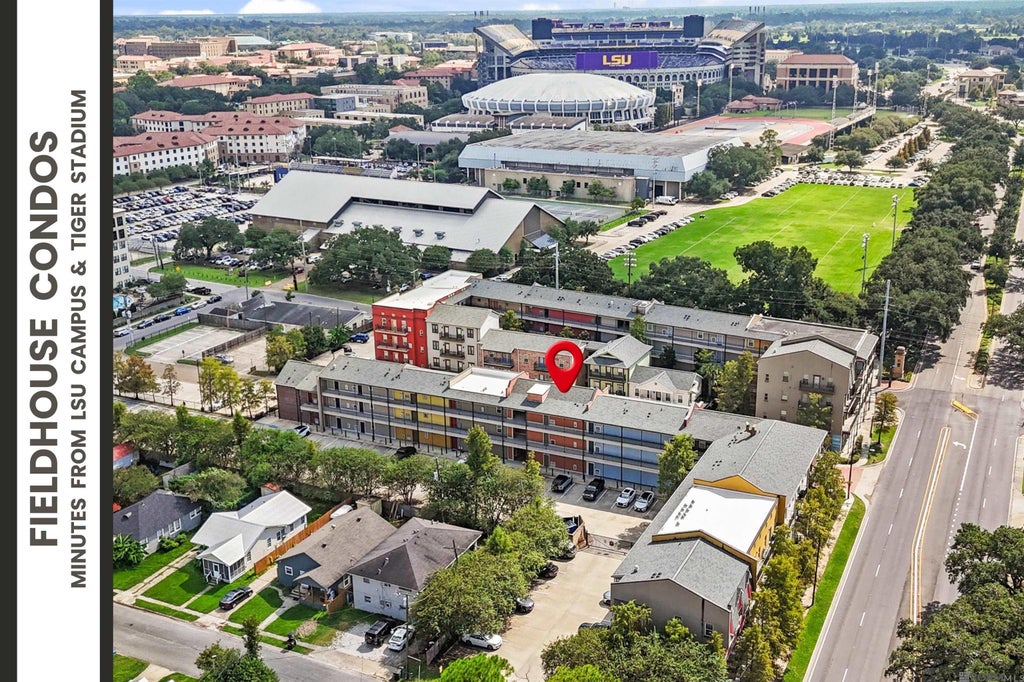 The Place to Be for Tiger Tailgating – Fieldhouse Condominiums! Welcome to Fieldhouse Condominiums, the ultimate destination for LSU fans and Baton Rouge living! Just footsteps from Tiger Stadium and the LSU campus, this location is unmatched for enjoying all the excitement of game days and the vibrant university lifestyle. Step inside this New Orleans–inspired second-floor condo, perfectly positioned near the elevator and fitness room for convenience. The open floor plan boasts hardwood floors, granite countertops, and stainless steel appliances—a stylish and functional layout ideal for everyday living or weekend entertaining. The kitchen features a raised breakfast bar with seating, perfect for morning coffee or evening gatherings before the game. Relax in the spacious living area or step outside to your private wrought-iron balcony and take in views of the charming courtyard-style architecture and LSU energy in the air. The large bedroom offers plenty of space and natural light, while the ensuite bath provides both comfort and privacy. Residents enjoy private gated parking, a fully equipped fitness center, and conveniently located dining, shopping and more! Whether you're an LSU alum, a proud fan, or an investor looking for a prime location property, this condo is the perfect blend of luxury, convenience, and Tiger pride.