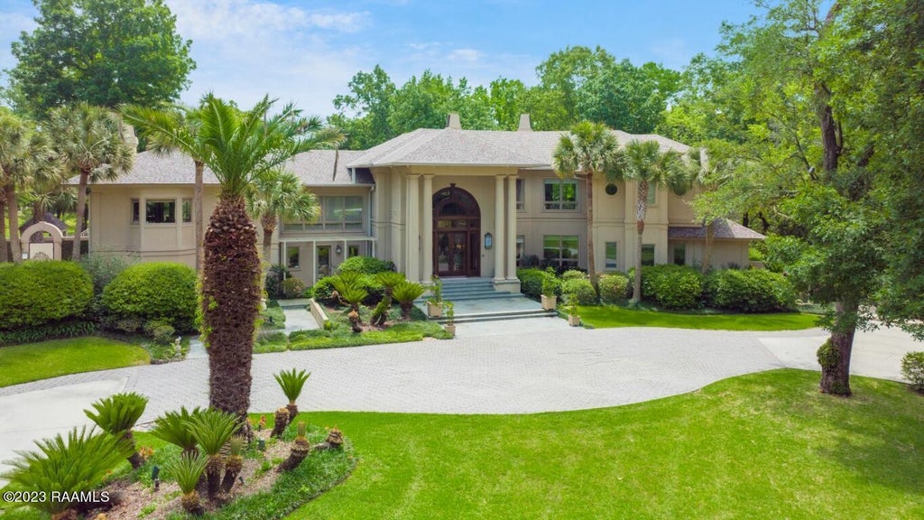 This contemporary, elegant home sits high above the Vermilion River on 4.9 acres in stately Fernewood subdivision. Designed by a team of distinguished architects and designers, the 3-split-level house opens with a tall mahogany and beveled glass entrance into a large living room. A 2-story wall of windows shows sweeping views of the lawn down to the river and adjoining cypress swamp. On the left wall is a fascinating two-sided aquarium of sea-life, which opens on the other side into a full bar painted as if under water. Beyond that is a hall way to the laundry room, elevator, and 3-car air-conditioned garage. To the right of the living room is a mahogany office with a wall of bookcases and a full bathroom, allowing alternate use as a bedroom.The foyer staircase curves up to the 2nd level landing and continues up to the balcony over the living room, sharing the floor to ceiling views. The dining room, kitchen, pantry, wine cellar, elevator, and family room are on the second level. The square dining room has a pyramid ceiling, an authentic Art Deco era hotel chandelier, two walls of floor to ceiling windows and two walls of inset glass shelving of crystal glassware. Between the dining room and the kitchen are the 2500+ bottle walk-in wine cellar, the elevator, and a full butler's pantry with a storeroom and half bath. The kitchen is a chef's delight boasting a dual-fuel cook top, 3 ovens, an inside grill (yes!), a commercial refrigerator, and an 8' x 6' solid piece granite-top island. There is ample storage in the floor-to-ceiling white oak cabinetry where a library ladder runs the length. A former open deck was closed into a family room. When entertaining, this room and the kitchen can be separated by a hidden wall system of sliding floor-to-ceiling white oak panels.Beyond the 3rd level balcony is a vestibule into the generous principal suite. It has the bedroom with a fireplace and view of the always-interesting cypress swamp, plus an outdoor balcony. The luxurious bathroom, with onyx countertops and heated flooring, has 2 of everything expected, plus a walk-in steam shower. An expertly designed closet for two was built in a 19' x 19' room, and spare room with a half bath has served as both a library and a child's bedroom.On the 1st floor level exists a suite with two bedrooms, two bathrooms, and a large sitting room with a kitchenette. An exterior door steps onto the arch-and-column back porch facing the cypress swamp. A fireplace and ceiling heat lamps allow year-round use. On the other end of the house is an open breezeway leading to a gazebo and outdoor staircase up to the family room. It is underneath the family room, off the breezeway below, that there is another bedroom, bathroom and bonus room considered under-roof yet outdoor. Along the ivy garden wall is a tool shed, half bath, and a hidden closet for deliveries. Built along the river is a staircase down to an open deck, continuing to a ramp down to the floating dock, with a mooring capacity of 22' by 9'. This perfectly designed and constructed house cleverly disguises numerous hidden cabinets and has a few other wonderful features! The foyer staircase curves up to the 2nd level landing and continues up to the balcony over the living room, sharing the floor to ceiling views. The dining room, kitchen, pantry, wine cellar, elevator, and family room are on the second level. The square dining room has a pyramid ceiling, an authentic Art Deco era hotel chandelier, two walls of floor to ceiling windows and two walls of inset glass shelving of crystal glassware. Between the dining room and the kitchen are the 2500+ bottle walk-in wine cellar, the elevator, and a full butler's pantry with a storeroom and half bath. The kitchen is a chef's delight boasting a dual-fuel cook top, 3 ovens, an inside grill (yes!), a commercial refrigerator, and an 8' x 6' solid piece granite-top island. There is ample storage in the floor-to-ceiling white oak cabinetry where a library ladder runs the length. A former open deck was closed into a family room. When entertaining, this room and the kitchen can be separated by a hidden wall system of sliding floor-to-ceiling white oak panels. Beyond the 3rd level balcony is a vestibule into the generous principal suite. It has the bedroom with a fireplace and view of the always-interesting cypress swamp, plus an outdoor balcony. The luxurious bathroom, with onyx countertops and heated flooring, has 2 of everything expected, plus a walk-in steam shower. An expertly designed closet for two was built in a 19' x 19' room, and spare room with a half bath has served as both a library and a child's bedroom. On the 1st floor level exists a suite with two bedrooms, two bathrooms, and a large sitting room with a kitchenette. An exterior door steps onto the arch-and-column back porch facing the cypress swamp. A fireplace and ceiling heat lamps allow year-round use. On the other end of the house is an open breezeway leading to a gazebo and outdoor staircase up to the family room. It is underneath the family room, off the breezeway below, that there is another bedroom, bathroom and bonus room considered under-roof yet outdoor. Along the ivy garden wall is a tool shed, half bath, and a hidden closet for deliveries. Built along the river is a staircase down to an open deck, continuing to a ramp down to the floating dock, with a mooring capacity of 22' by 9'. This perfectly designed and constructed house cleverly disguises numerous hidden cabinets and has a few other wonderful features!