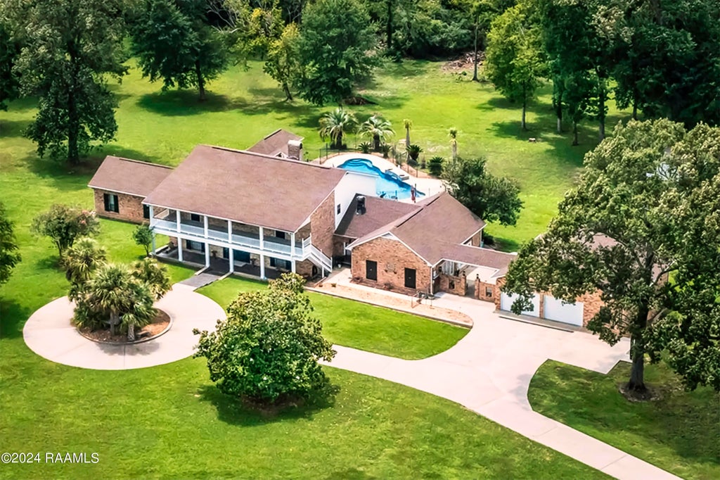 Your dream home awaits! Step into luxurious living with this exquisite 4-bedroom, 3.5-bathroom house, where elegance meets functionality, creating the perfect haven for both relaxation and entertaining. A grand entrance welcomes you into a spacious 5,335 square-foot interior adorned with Pecky cypress ceilings and French doors leading to expansive outdoor spaces.The gourmet state-of-the-art kitchen, complete with a Sub Zero fridge and freezer, commercial movable Hibachi grill, and rustic wood beams, is a culinarian's dream. An adjoining formal dining room adds a touch of sophistication, perfect for hosting dinner parties. Each bedroom offers comfort and style, particularly the primary bedroom suite, which features two walk-in closets, a cozy fireplace, and direct access to a serene sunroom.Outdoor living is redefined here with a stunning double-deck patio overlooking a sparkling pool and hot tub, surrounded by lush landscaping. The property also boasts a pool house and a well-equipped workshop in the expansive garage that comfortably accommodates four vehicles.For those who work from home, the large office and craft room provide ample spaces for creativity and productivity. The den/game room with a fireplace ensures countless hours of family fun.Situated just a short drive from local attractions like the Evangeline Downs Racetrack and Casino and various lakes, and with easy access to major highways, this home not only offers luxury but also convenience and accessibility. Whether it's enjoying a quiet day at home or entertaining guests, this property promises a lifestyle of comfort and prestige.Schedule a showing to see this exquisite home and make it yours!