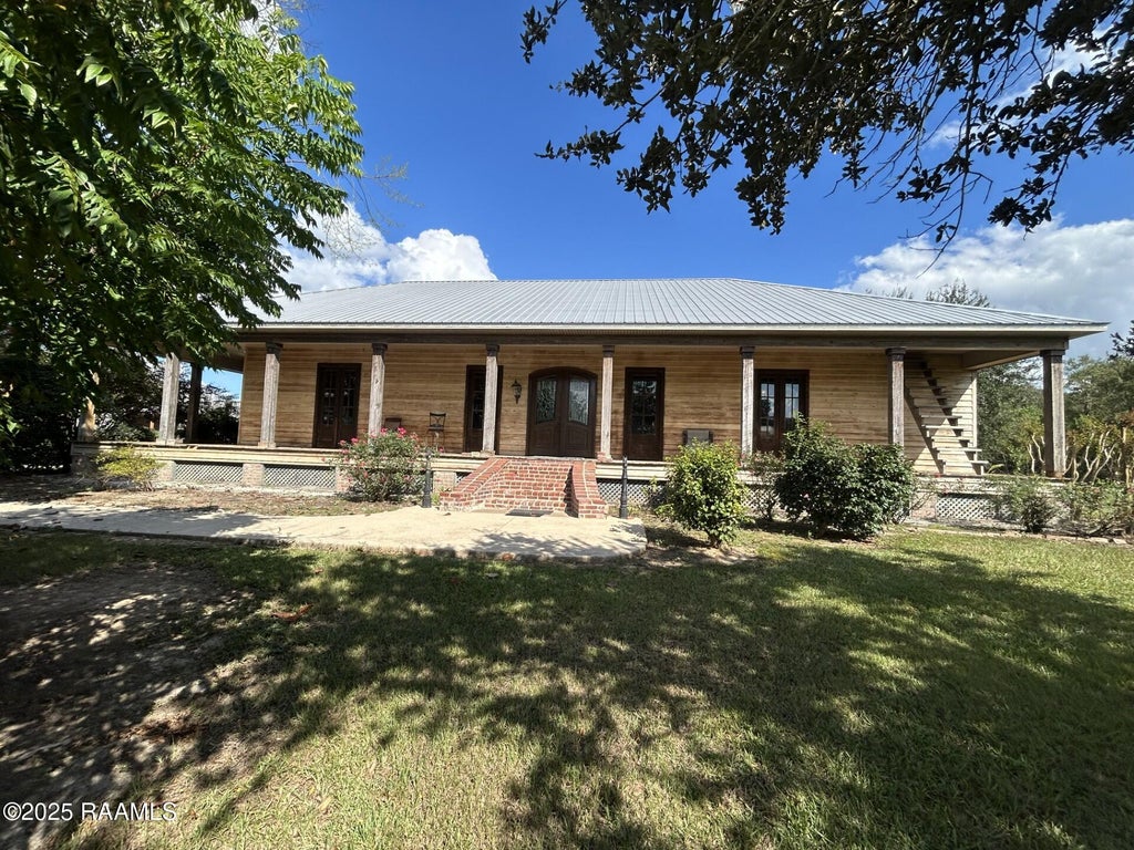 Experience the charm of a custom-designed / built, true Cajun Acadian throwback with modern comfort and elegance of this 4-bedroom, 3-bathroom set on 19.82 acres in Pine Prairie. This pier-and-beam home features a natural wood exterior, a wide wrap-around porch on three sides, and cedar walls and ceilings inside. Old-style farmhouse soul meets contemporary beauty throughout the interior.' With 3,470 square feet of living space, this property offers room to gather, relax, and enjoy the quiet surroundings. The heart of the home features a spacious kitchen with granite countertops and abundant cabinet space, flowing into a cozy living room complete with a unique river-stone fireplace, a large dining room, and a den with walls of windows and doors that bring in plenty of natural light. These inviting spaces are ideal for family time or entertaining guests. The primary bedroom offers an ensuite bathroom with a separate tub and shower. A second full bathroom also provides both a tub and shower, while the third provides both a guest restroom and also a bathroom for the adjacent bedroom (or office). Each bedroom has its own exterior door onto the wraparound porch, which provides a tranquil coffee, sunset, swinging and relaxing break with a view of the property where you can envision gardens, ponds, ball fields, play spaces, or anything you desire.The 700 ft carport leads to the 1600 ft garage paradise--a hobbyist's solution with a magnificent workshop area, multi-car parking, and custom shelving that solves many homeowner's space challenges. On the far side of the garage is a special partial garage for outdoor equipment, tractors, or other. And another separate 3rd covered carport area in the back.