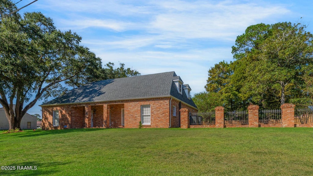 Two stately live oaks and a broad magnolia grace this beautiful property. This immaculate, beautiful, two story solid brick home includes 4 bedrooms, four and 1/2 baths, and has two new outside CHA units and a new roof! This custom built home was designed by an engineer with safety in mind. There are two front exits and three back exits and a fire escape from the upstairs. The yard is partially fenced with a. brick and iron front fence and a privacy wood fence. This house is on a high elevation. Flood zone X. It has terraza floors, brick floors in the foyer, and wood laminate floors. Baths are tile and the primary suite has an Italian marble vanity. All appliances remain with the home: Stove, refrigerator and washer/dryer. There is storage galore in this house. Original blueprints remain with the home. It has a covered front porch for sitting and a large back carport and extra storage including an outdoor shower. The den is large with a beamed ceiling and a gas fireplace. The builder was JB Viviano, a builder who was the best when this house was constructed.Must see the quality in this large place. Listed below a current appraisal. Call for a showing today!