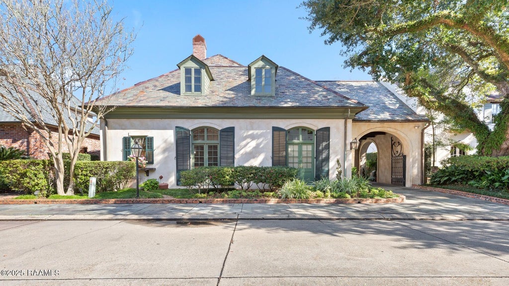This luxurious home was architecturally designed by Kevin Gossen. Timeless and classic describes this gem. Upon entering the motor court through the Porta Crochet you will see the quaint courtyard that features a pool, veranda, outdoor kitchen, outdoor shower and beautiful landscaping. The entrance into the grand foyer features marble flooring, a semicircular staircase, the living, dining and kitchen are all open and the flow is perfect for entertaining. 3 sets of French doors open onto the Veranda, pool and outdoor kitchen. The kitchen is a chef's dream with top of the line stainless appliances. The primary suite is on the main level and has a large bath, dressing area and a custom closet. Upstairs has 3 ensuite bedrooms. One bedroom is setup as a quest suite with kitchenette, sitting and dining areas. There is also an office with built-ins, fireplace, coffee par plus a den. It's hard to find home of this quality that are in great condition and in the center of Lafayette.