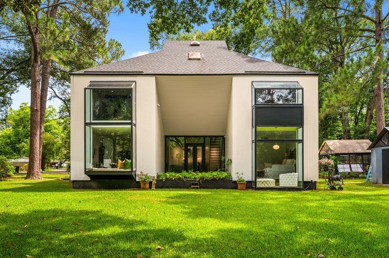 Beautiful Contemporary architectural custom home nestled on the serene Bayou Robert. This 4-bedroom, 3 & 1 half bath residence offers a peaceful retreat surrounded by nature. Enjoy a tranquil yard with a greenhouse, lush landscaping, and daily visits from ducks. A perfect blend of comfort and charm in a quiet, picturesque setting ideal for those seeking peace and privacy. Floor to ceiling windows offer a stunning view of the bayou and surrounding nature. Enjoy your coffee on those cool mornings seating in front of the wood-burning fireplace listening to the sounds of birds chirping. Great covered grilling space, right off the breakfast area, sheltered from the elements. This property has a tank-less water heater. Convenient and unique coffee nook with its own water supply.