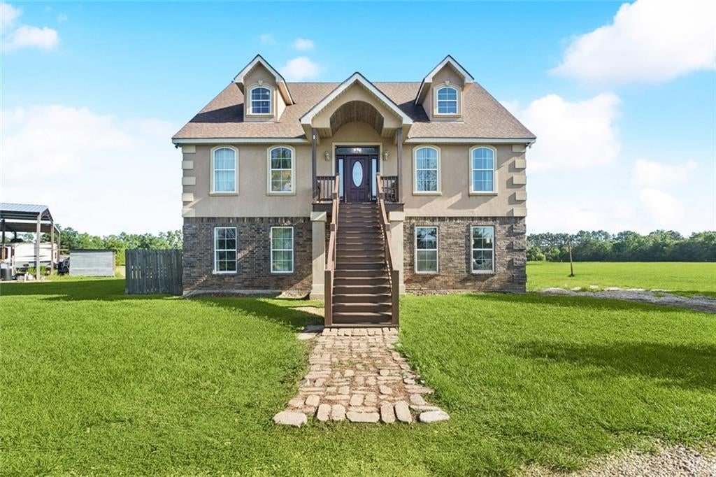Welcome to your private retreat! Nestled on over 11 stunning acres in desirable North Covington, this custom-built 4-bedroom, 2 full bath, 2 half bath home offers the perfect blend of comfort, style, and serene country living. Step inside to an open floor plan designed for effortless entertaining and everyday living. The spacious living room features vaulted ceilings, an inviting wood-burning fireplace, and an abundance of natural light that fills the home. The kitchen is a chef’s dream, boasting stainless steel appliances, granite countertops, ample cabinetry, and a breakfast area that opens to a large deck—ideal for morning coffee or evening gatherings with a view. The primary suite offers a relaxing retreat with a spa-inspired ensuite bath complete with a soaking tub, and no carpet for easy maintenance and a clean, modern feel. A flexible downstairs bedroom can serve as a guest suite, home office, media room, or mancave—the possibilities are endless. Enjoy outdoor living at its finest with RV and boat parking, a peaceful pond perfect for fishing, and room to roam, garden, or explore. Whether you're seeking quiet country nights or lively weekends with friends and family, this property has it all. Home is located in the highly desired flood zone X - no flood insurance is required. Don't miss your chance to own this one-of-a-kind home that brings together natural beauty, thoughtful design, and versatile living spaces. ** 4-WHEELERS,LAWN MOWERS, TRACTOR, TRAILERS, CAMPER, WASHER AND DRYER DO NOT CONVEY WITH THE PROPERTY **