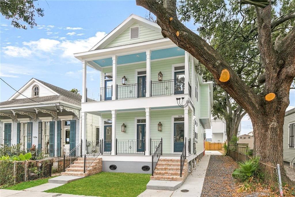New Construction in the Black Pearl with views of the levee - this second story unit has a spacious balcony underneath a historic Live Oak tree, 11' ceilings, exterior Bevolo gas lamps, and hardwood flooring throughout. The kitchen floorplan is open-concept w/ high end stainless steel appliances (including a gas range and hood vent). Washer dryer room in-unit. The primary bedroom has a beautiful bathtub, a spacious walk-in closet and a small private balcony overlooking the levee. Parking in rear. Smaller pets considered. Water, trash and high speed wifi included in rent. Available 9/20.