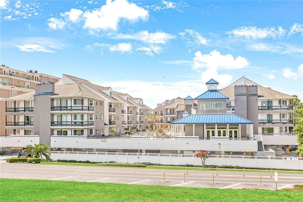 Resort living all year round! A rare and unique opportunity to lease one of the largest condos at Pontchartrain Place, featuring an elevator and covered access to your front door. This condo offers generous square footage and a prime location overlooking Lake Pontchartrain. It includes an open floor plan, vaulted ceilings, and a private balcony with stunning lake views. The loft has been transformed into a spacious master bedroom with an oversized closet and a luxurious bathroom with a large walk-in shower. The downstairs bedroom boasts a spectacular view of the lake. The second bathroom features a garden-sized tub for relaxing. A storage unit in the garage is also included. Enjoy easy access to seafood restaurants and outdoor activities along the lake path. The Bird's Nest at Bucktown Marina adds a charming touch to this area.