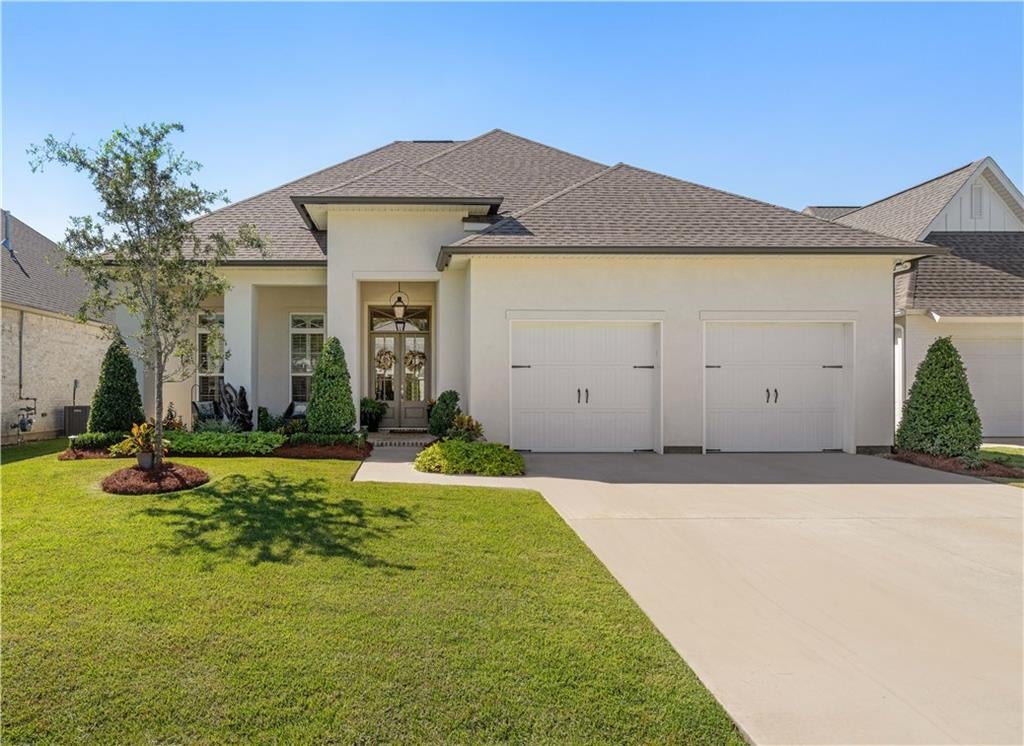 Located in the Estates at Watercross, this beautiful home is only 3 years young and offers 4 bedrooms, 3 full baths and meticulous design details throughout. The inviting front porch opens to a spacious layout featuring engineered wood floors, plantation shutters and a cozy brick fireplace. The kitchen is a true highlight with quartz counters, large center island, ample cabinet space and a wall of windows fills the entire living area with natural light. The elegant primary suite boasts a tray ceiling, accent walls, freestanding tub and an oversized closet. Additional highlights include a mudroom, abundant storage and a balance of beauty and practicality. Step outside to enjoy an extended patio with a fire pit, perfect for relaxing or entertaining, overlooking peaceful green space and gutters already in place. You can also enjoy the neighborhood boat launch in this gated community. Estates at Watercross is tucked away on the scenic Tchefuncte River, less than 15 minutes to Downtown Covington and about 45 minutes north of New Orleans. Come discover why this neighborhood is one of the most sought-after!
