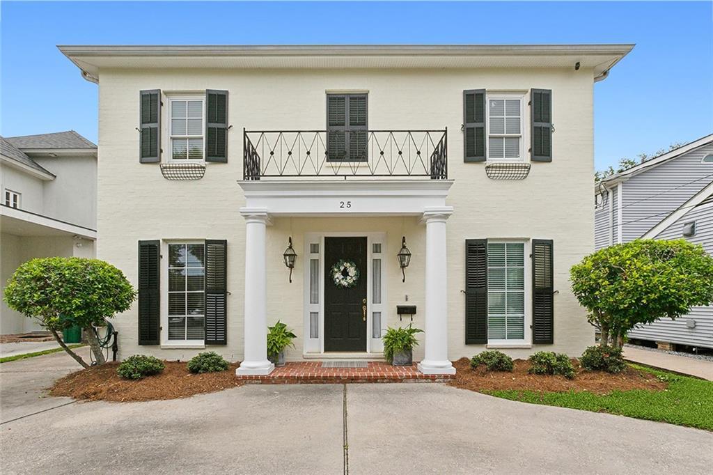 Classic elegance meets modern function in this two-story brick home located just off Metairie Road. The timeless exterior features symmetrical design, columned entry, and balcony detail, setting the tone for the refined interior. The main floor offers a spacious layout with a formal dining area, den, and living room connected by wide openings and abundant natural light. A gas fireplace with built-in shelving adds architectural interest, while the tile flooring throughout enhances flow and durability. The kitchen is designed with extensive cabinetry, granite counters, stainless appliances, and a breakfast nook overlooking the backyard. A butler’s pantry and laundry area provide additional storage and workspace. Upstairs includes four bedrooms and three full baths. The primary suite features hardwood floors, generous closet space, and a large ensuite bath with double vanities, soaking tub, and separate shower. Additional bedrooms offer flexible space for guest use or home office needs. Outdoors, enjoy a fenced yard, patio, and driveway with gated access. Conveniently located in proximity to local parks, dining, and shopping, this home combines local charm with contemporary comfort in a highly accessible Metairie setting.