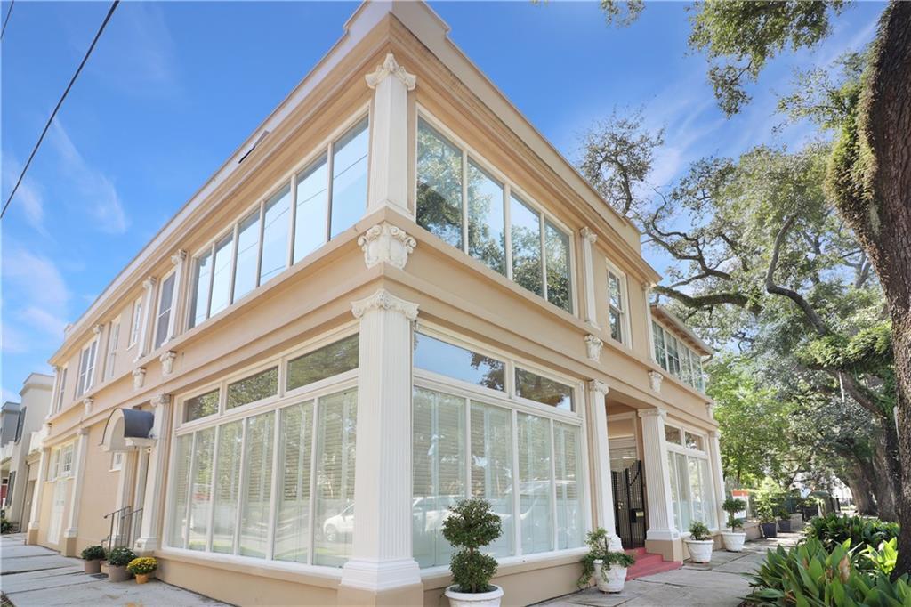 This stunning first floor Garden District condo boasts luxury details throughout: attached garage parking, private courtyard, hardwood floors, high ceilings, marble fireplace mantel, beautiful millwork, built-ins, a huge primary suite with walk-in closet and travertine bathroom, and 24/7 Neighborhood Patrol. Both the primary bedroom and the study open directly onto the private courtyard. The study can be closed off and used as a 3rd bedroom. Located at the corner of Washington Avenue on the streetcar line, steps to The Rink and just 5 blocks to all the fun of Magazine Street!